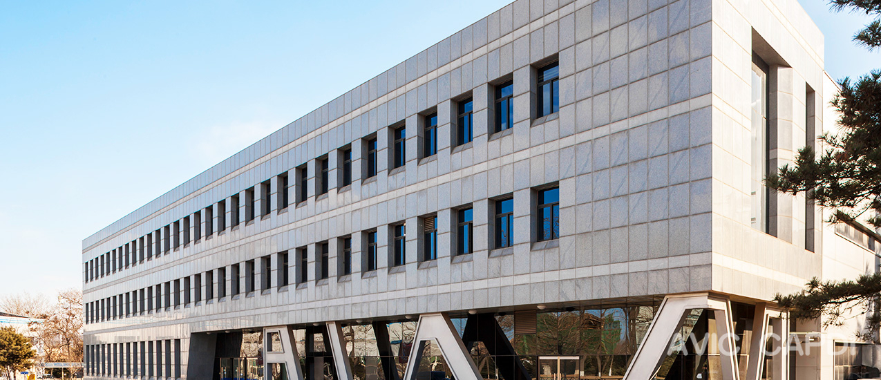 鋼柱形體結合航空材料院的名稱縮寫,設計演化為“BIAM”,給整個建筑增添活潑感和現代感,成為這個廠區的醒目特征。