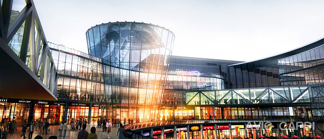 項目位于唐山市豐南新中心核心地帶,功能為商業娛樂綜合性建筑,內設超市、商業、影院、餐飲及相應配套設施,總建筑面積約為11.9萬平方米,其中地面四層為商業、影院及餐飲,地下一層為超市、設備用房及車庫。