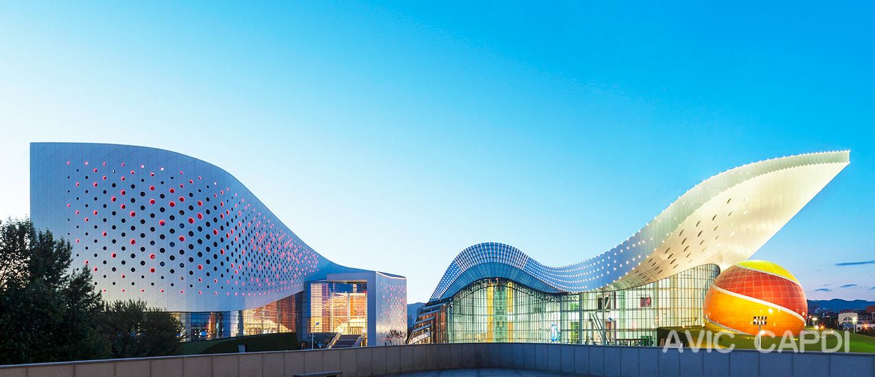 內蒙古演藝中心包括 九個 藝術單位的排練廳(標準1200座舞臺)、劇場、音樂廳、琴房、舞美道具制作間、服裝間、檔案室、庫房、辦公場所、會議室、生活服務區等,抽象內蒙古最具特色的文化藝術元素,如藍天綠草間的白云般描繪出草原藝術殿堂的浪漫氣韻。