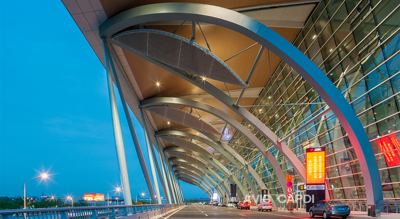 Количество пропуска пассажиров в год: 10 миллионов. Строительная площадь: 64950кв.м Дата завершения: 2014г. Особенность данного объекта: Показать городскую культуру Вуси с помощью темы Лотоса. Замечательно соединяется с существующим корпусом терминала. |