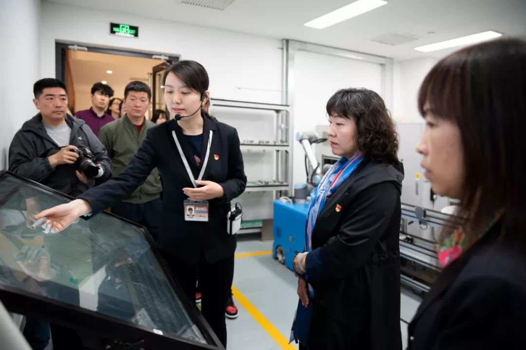 老師們對其中所包含的智能技術產生了濃厚的興趣,一邊仔細聆聽介紹,一邊認真觀看著生產線的每一個環節,為科研技術人員研發的航空裝備智能制造技術感到由衷的自豪。